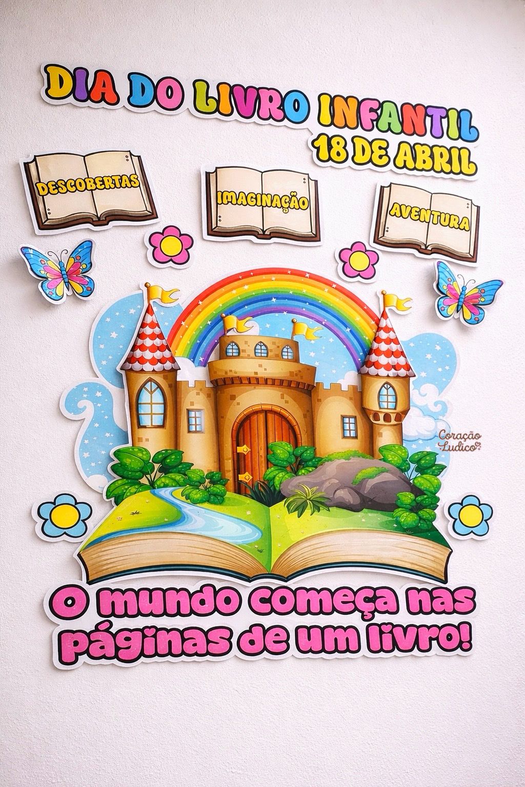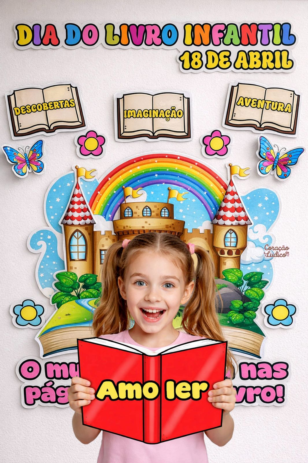 Encante sua sala com um painel lúdico e colorido, perfeito para celebrar o Dia do Livro Infantil!