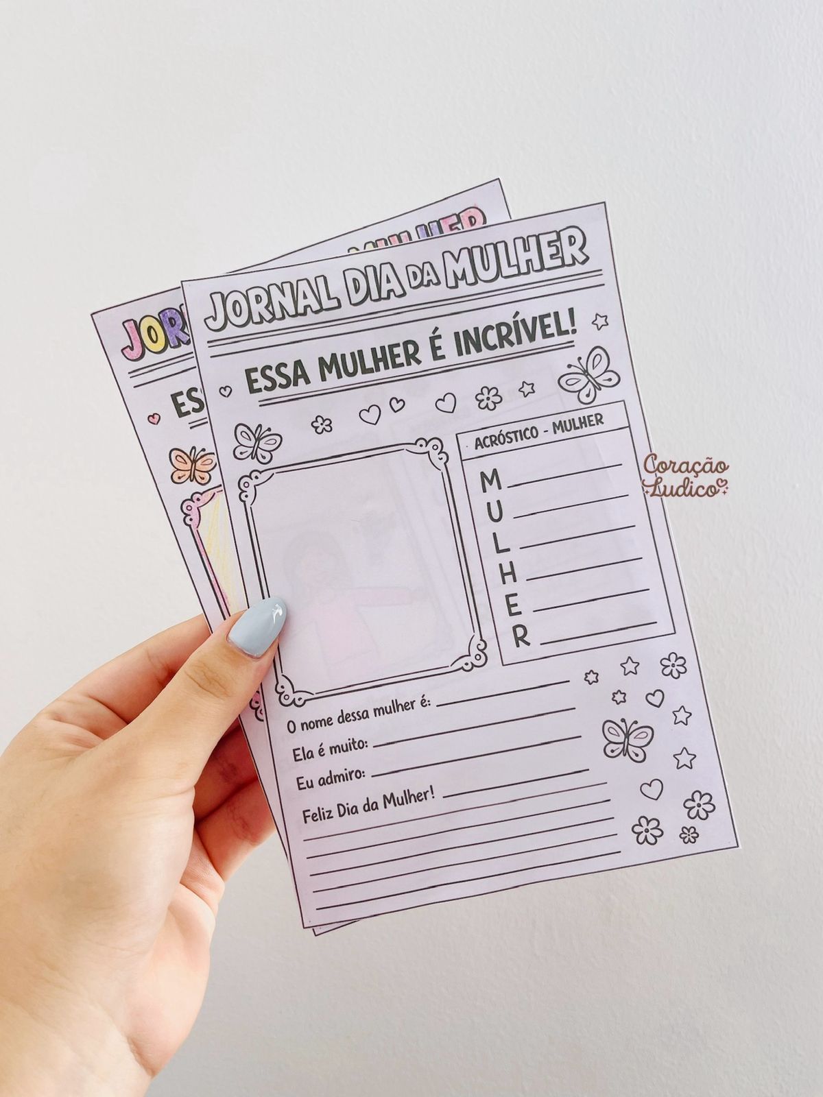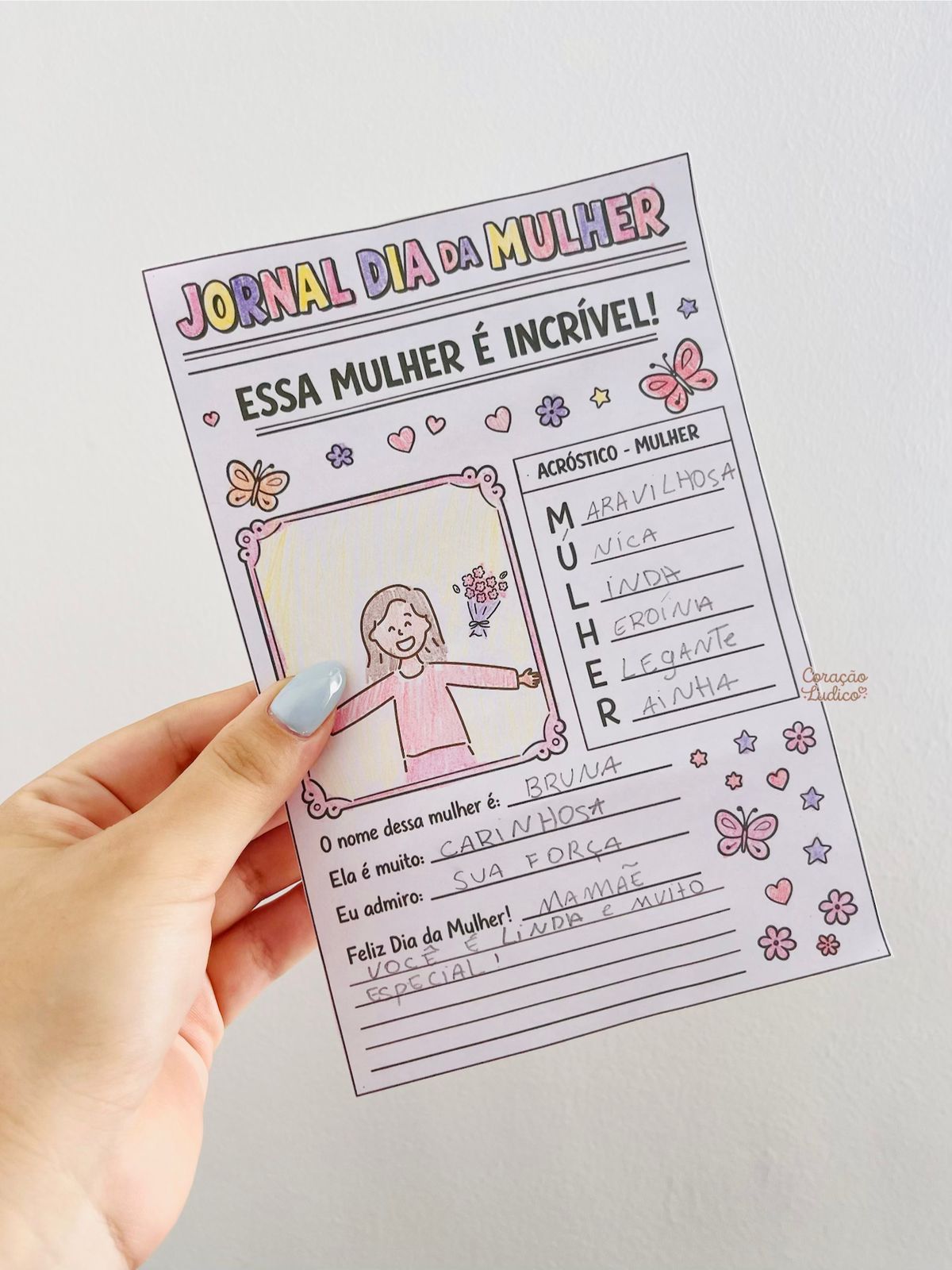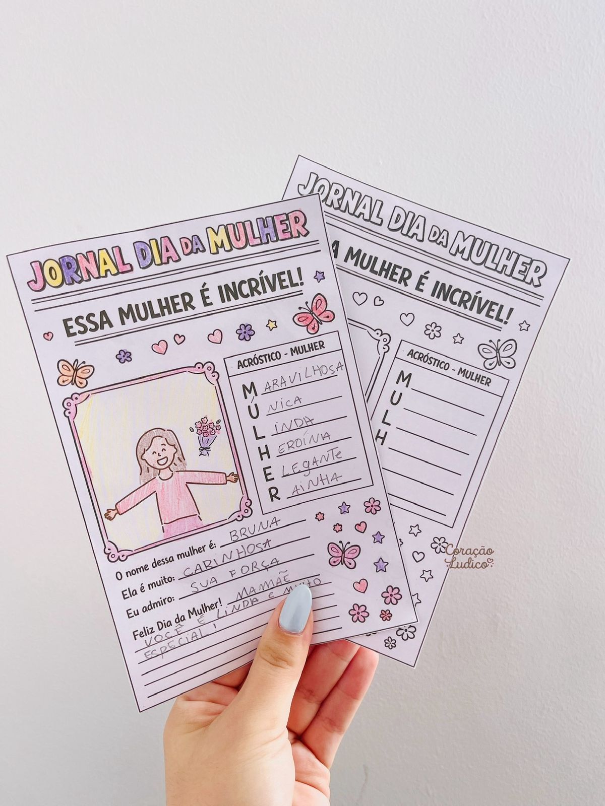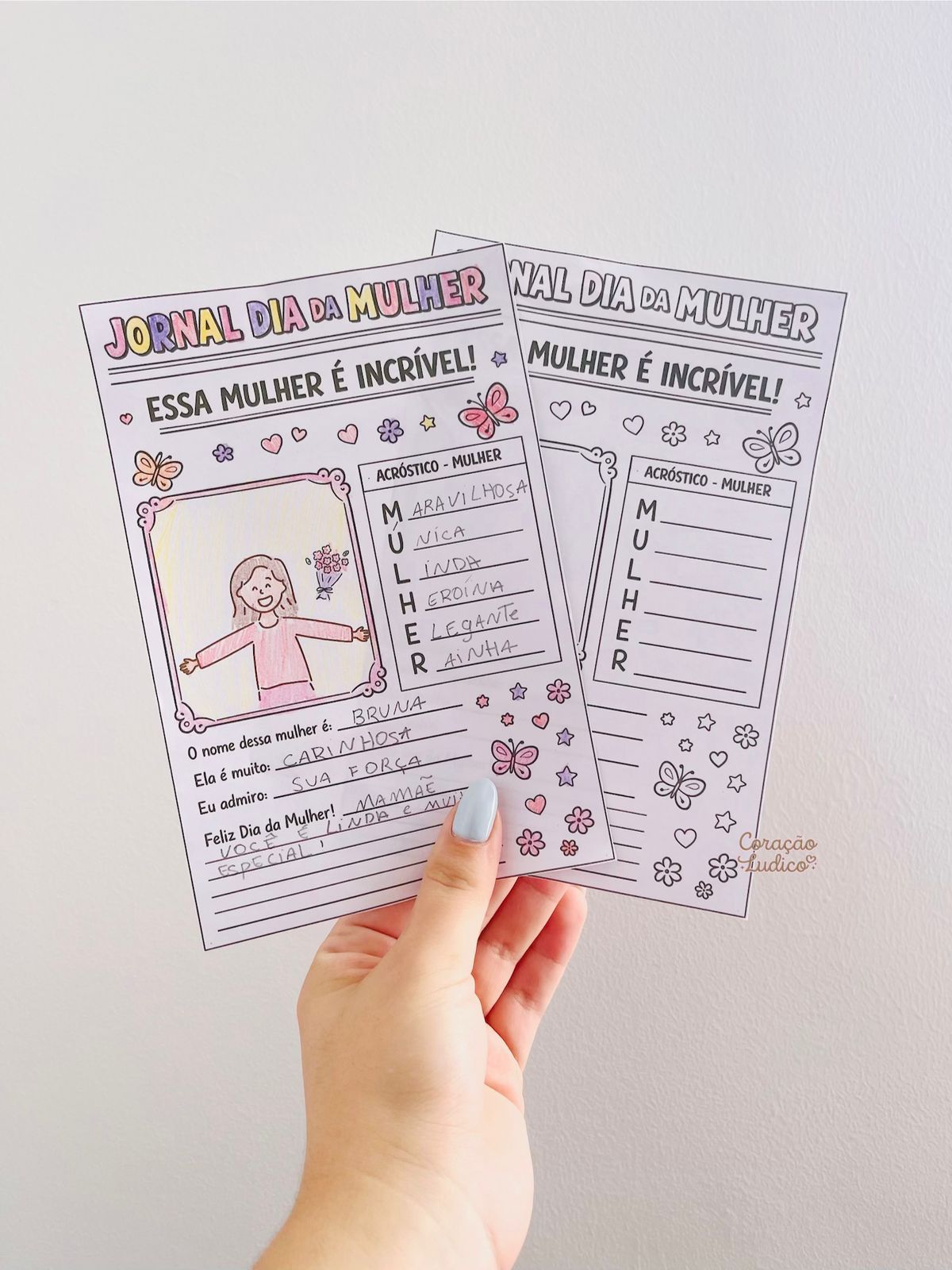 Uma atividade criativa e significativa para celebrar o Dia da Mulher de forma especial! O Jornal Dia da Mulher é ideal para trabalhar em sala de aula ou enviar como lembrancinha cheia de significado