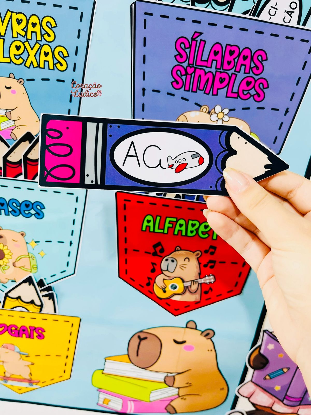 7 Bolsinhos – Cada um contém: Alfabeto A\Z, Vogais, Sílabas Simples e Complexas, 12 Frases, 12 Palavras Simples e Complexas;