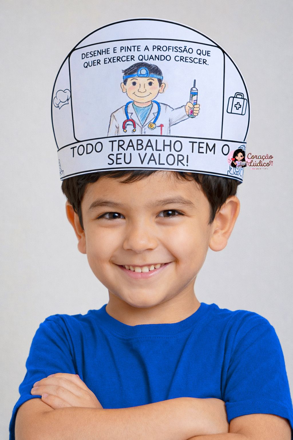 Uma atividade criativa e significativa para trabalhar o tema Dia do Trabalho com as crianças!A proposta é estimular a imaginação, permitindo que cada criança desenhe e pinte a profissão que deseja exercer quando crescer.