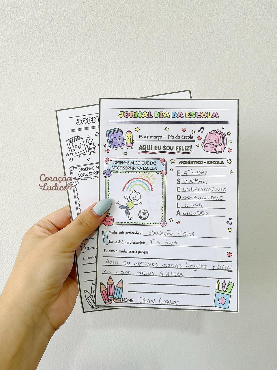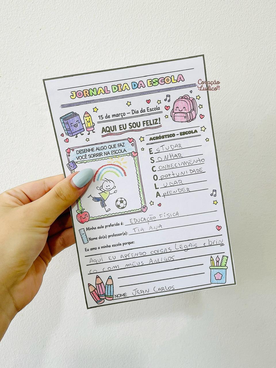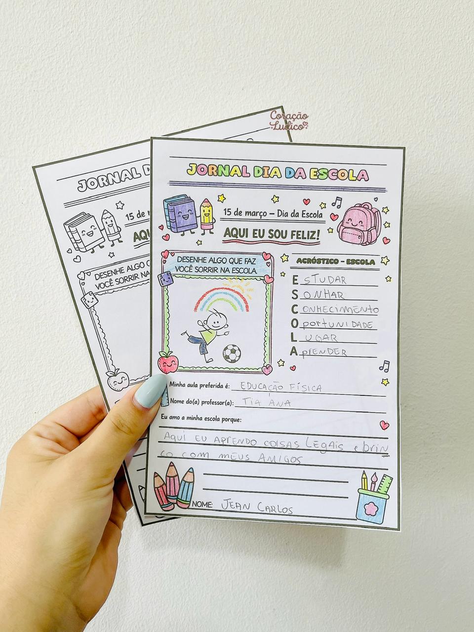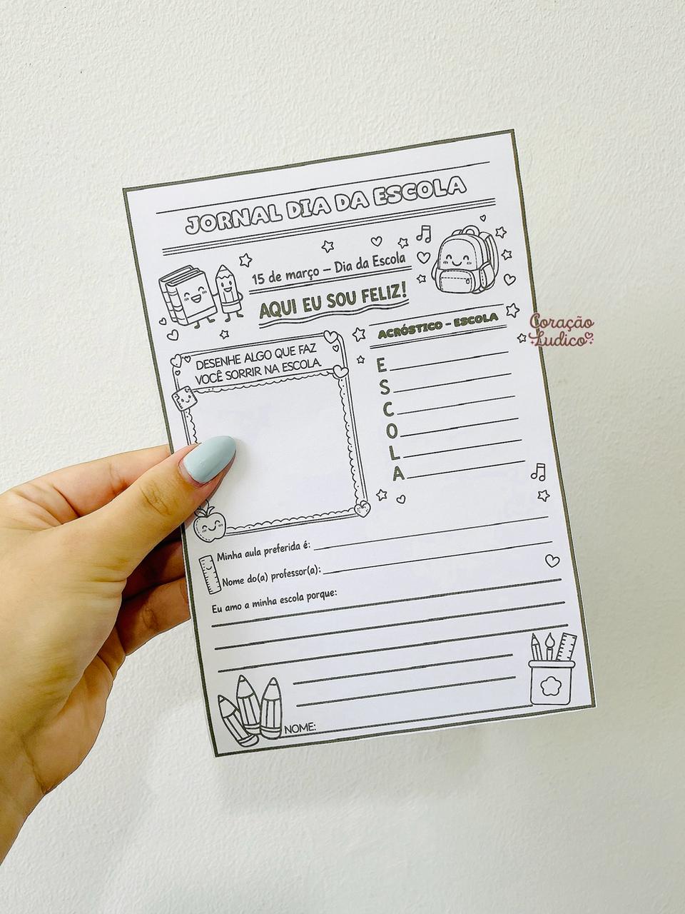 Uma atividade encantadora e significativa para celebrar o Dia da Escola – 15 de março de forma lúdica e especial! O jornal traz propostas que estimulam a criatividade, a escrita e a valorização do ambiente escolar. Ideal para Educação Infantil e Ensino Fundamental.