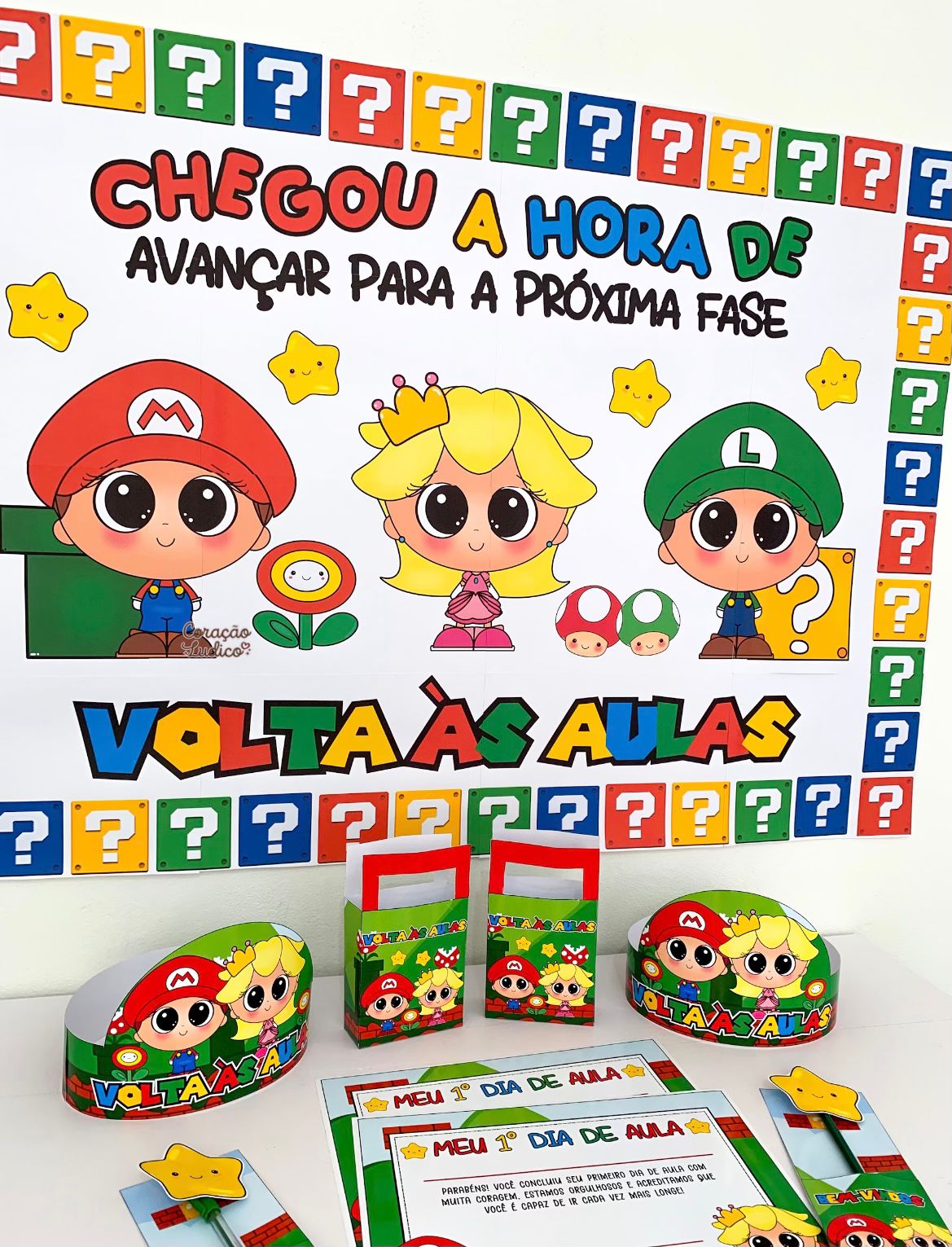 Prepare uma recepção inesquecível para seus alunos com o Kit Volta às Aulas – Super Mário! Um conjunto criativo, colorido e cheio de diversão para tornar o primeiro dia de aula ainda mais especial.