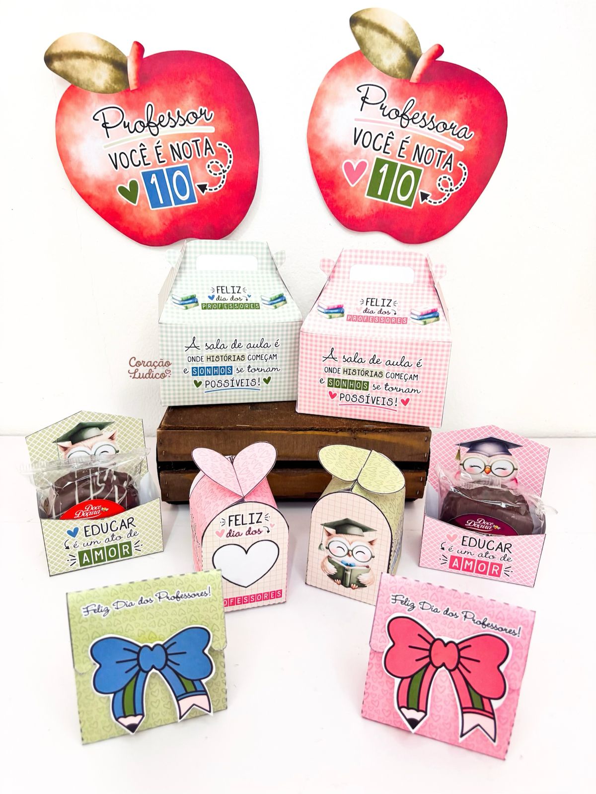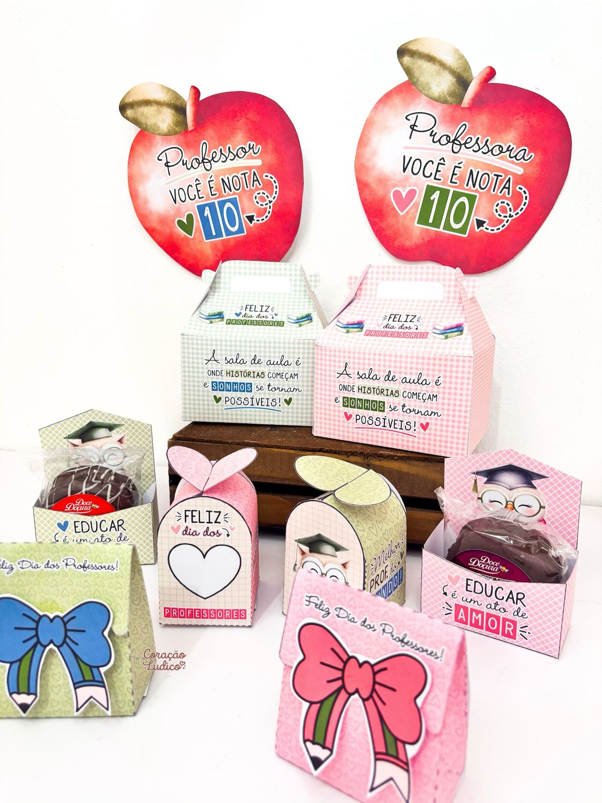 Preparei um Kit de Lembrancinhas exclusivo, com várias opções de caixinhas criativas para presentear professores e professoras de um jeito especial.