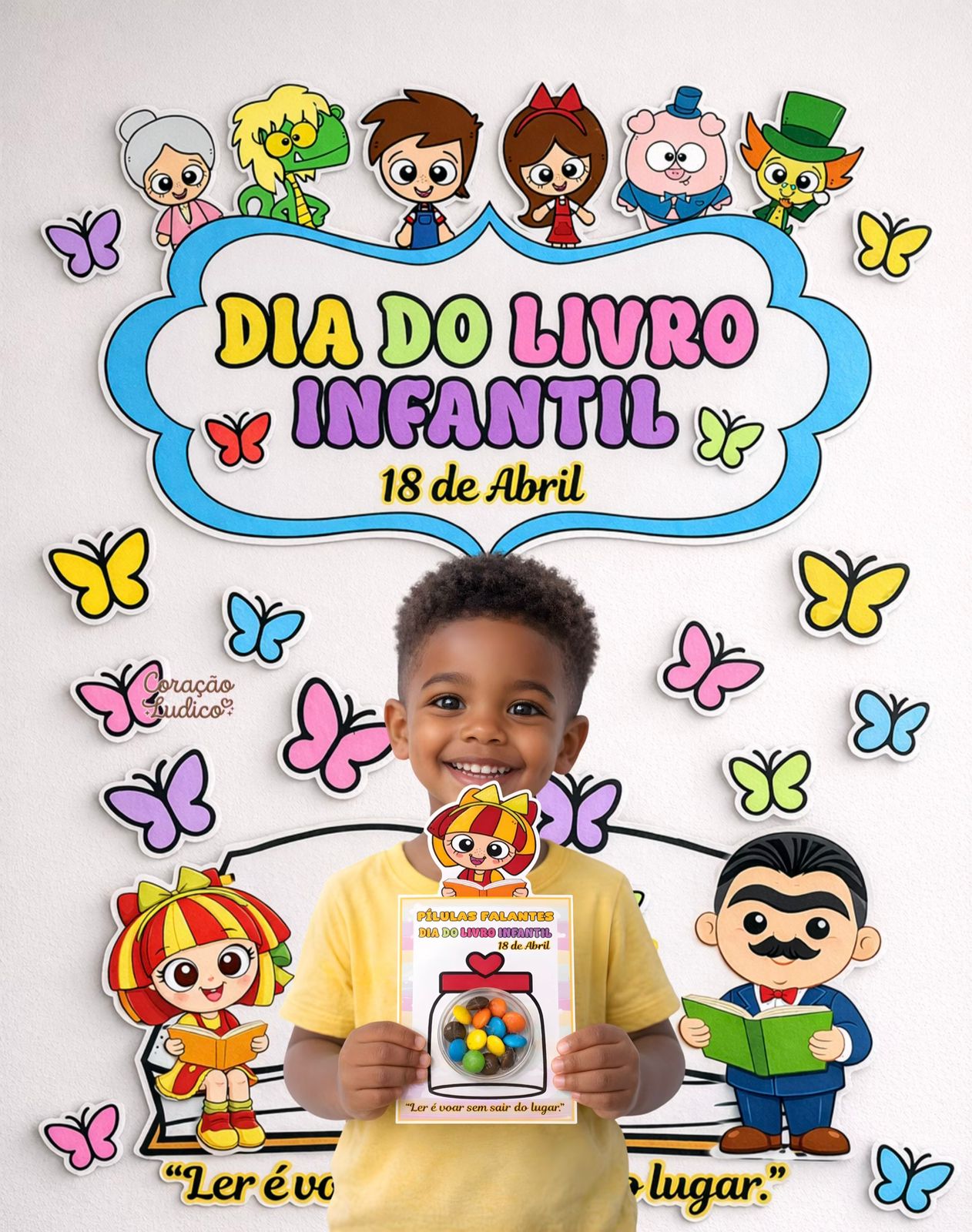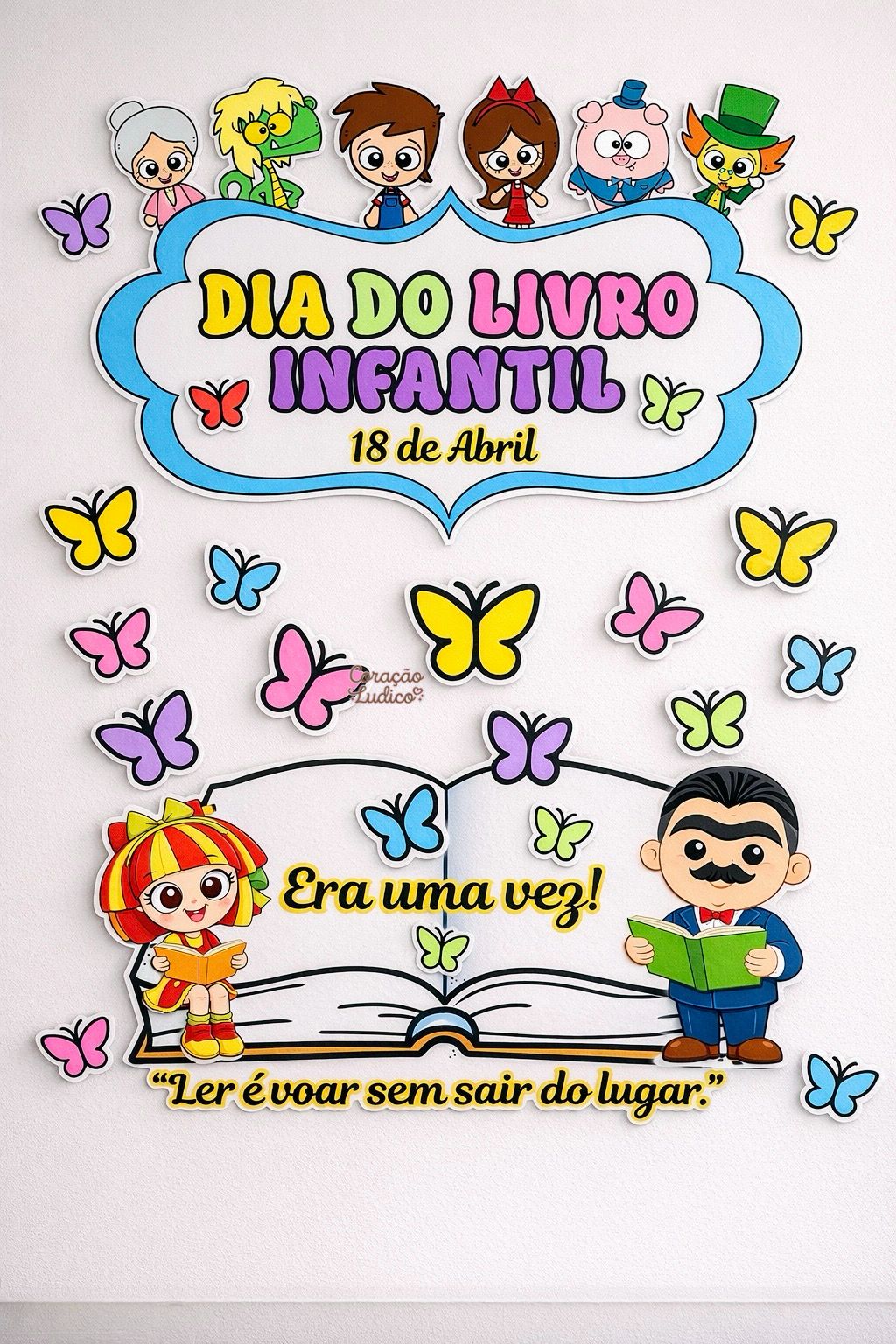 Encante sua sala com esse painel lindo, colorido e cheio de imaginação! Perfeito para trabalhar o Dia do Livro Infantil de forma lúdica e envolvente com as crianças