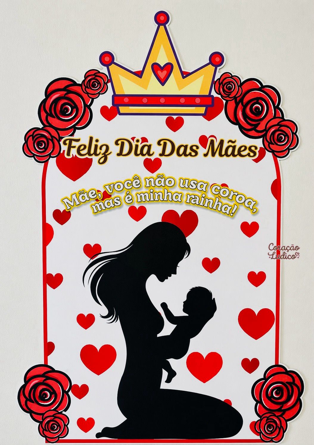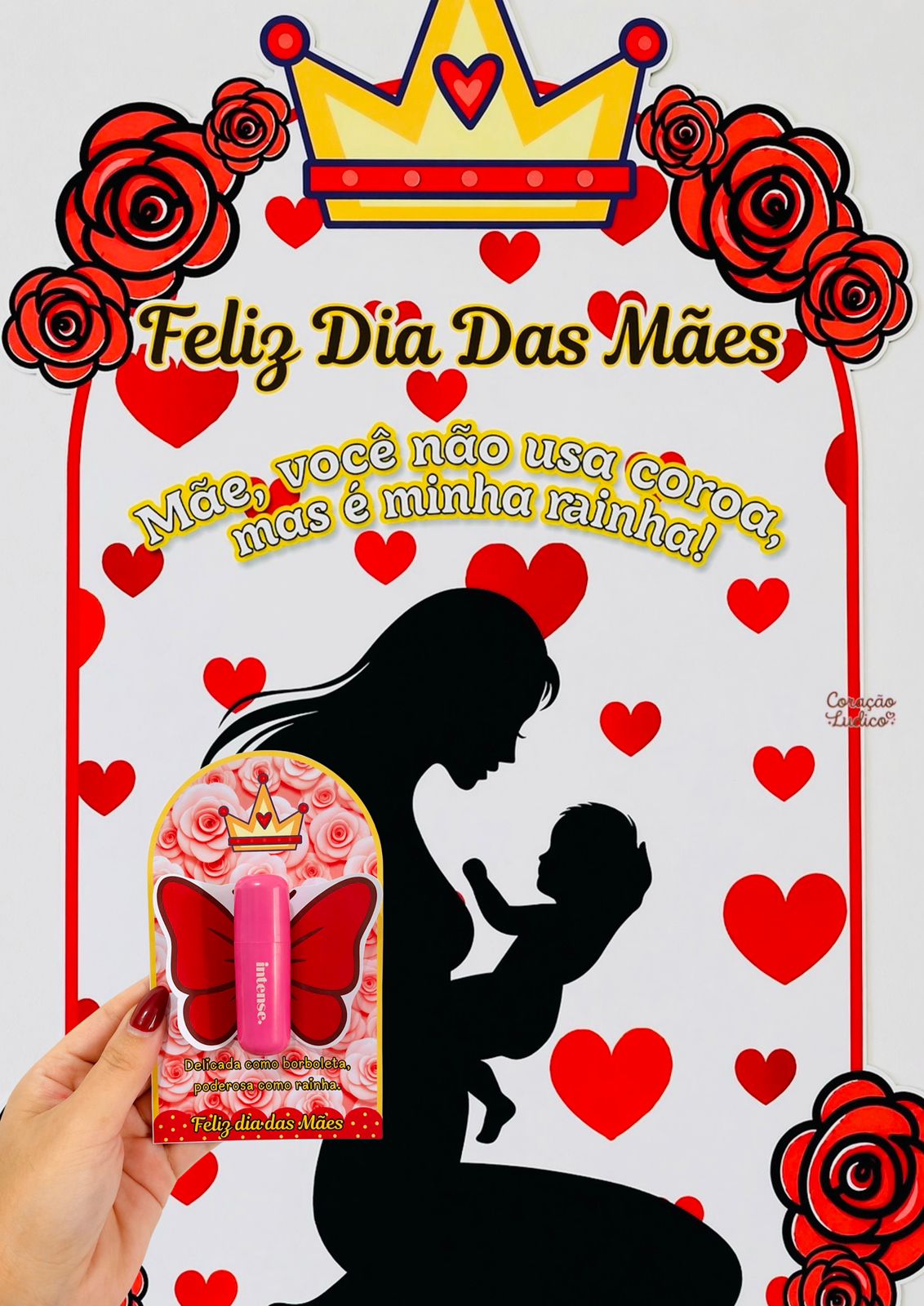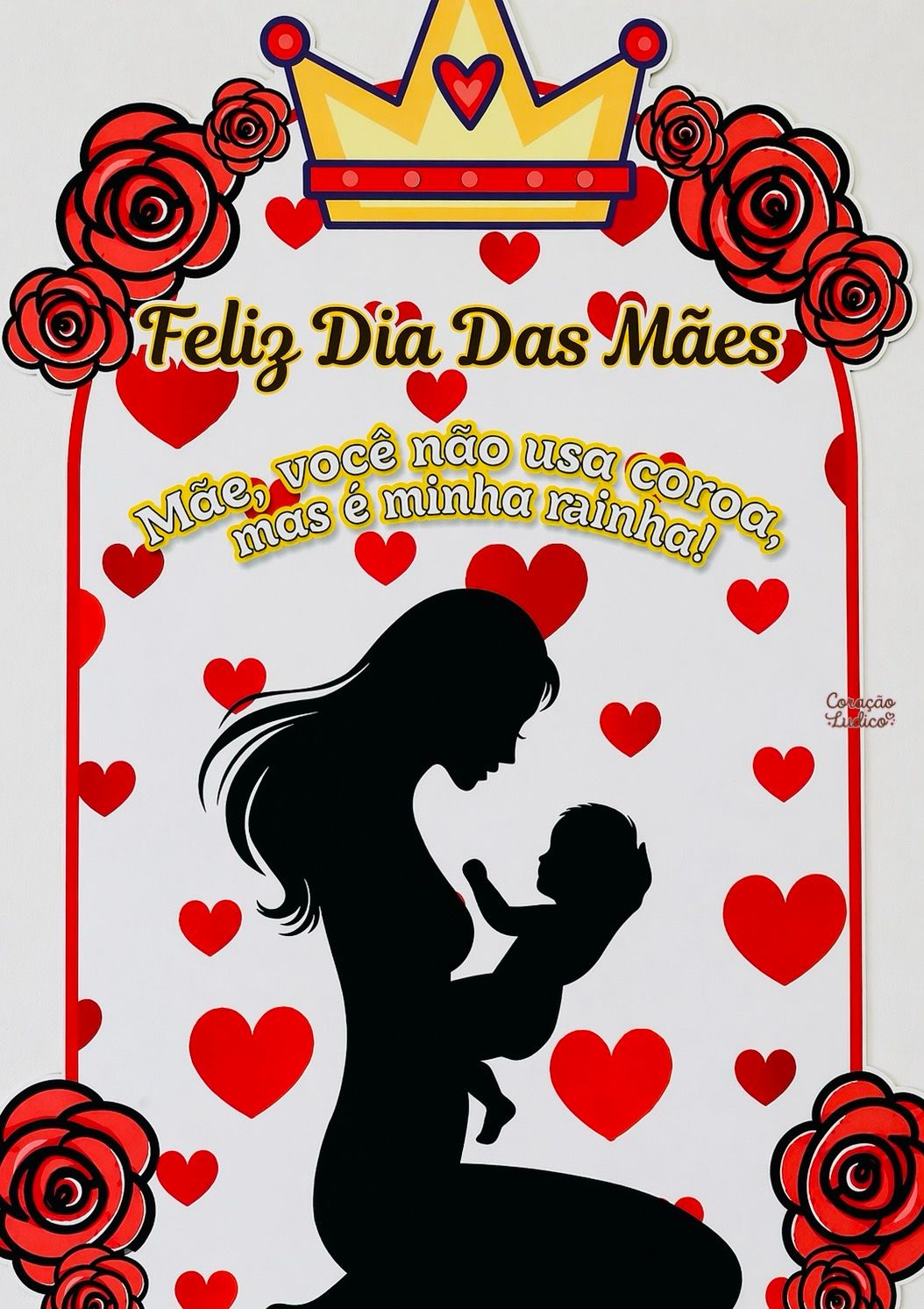 Com design sofisticado em tons de vermelho, coroa e detalhes florais, ele traz a linda mensagem: