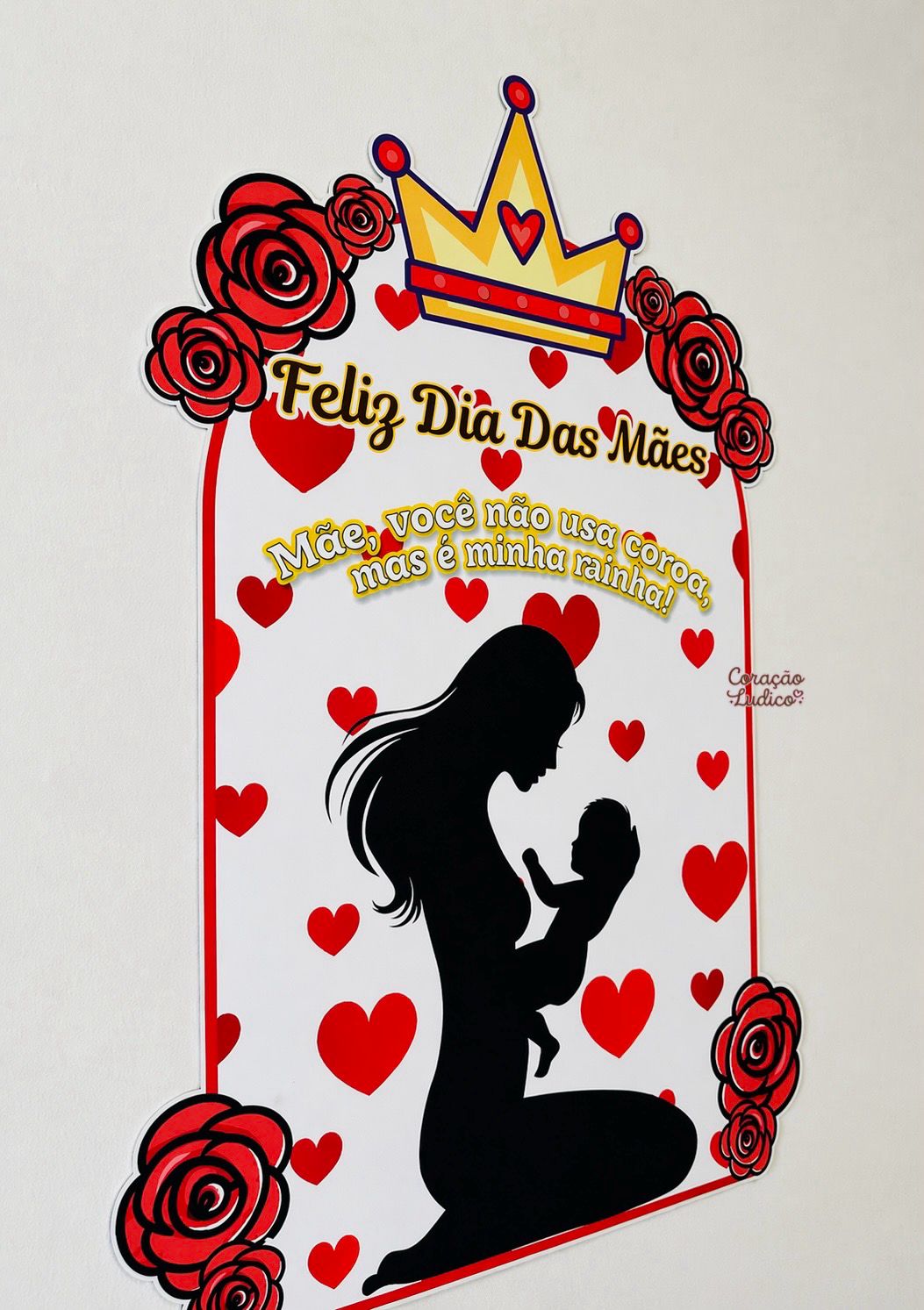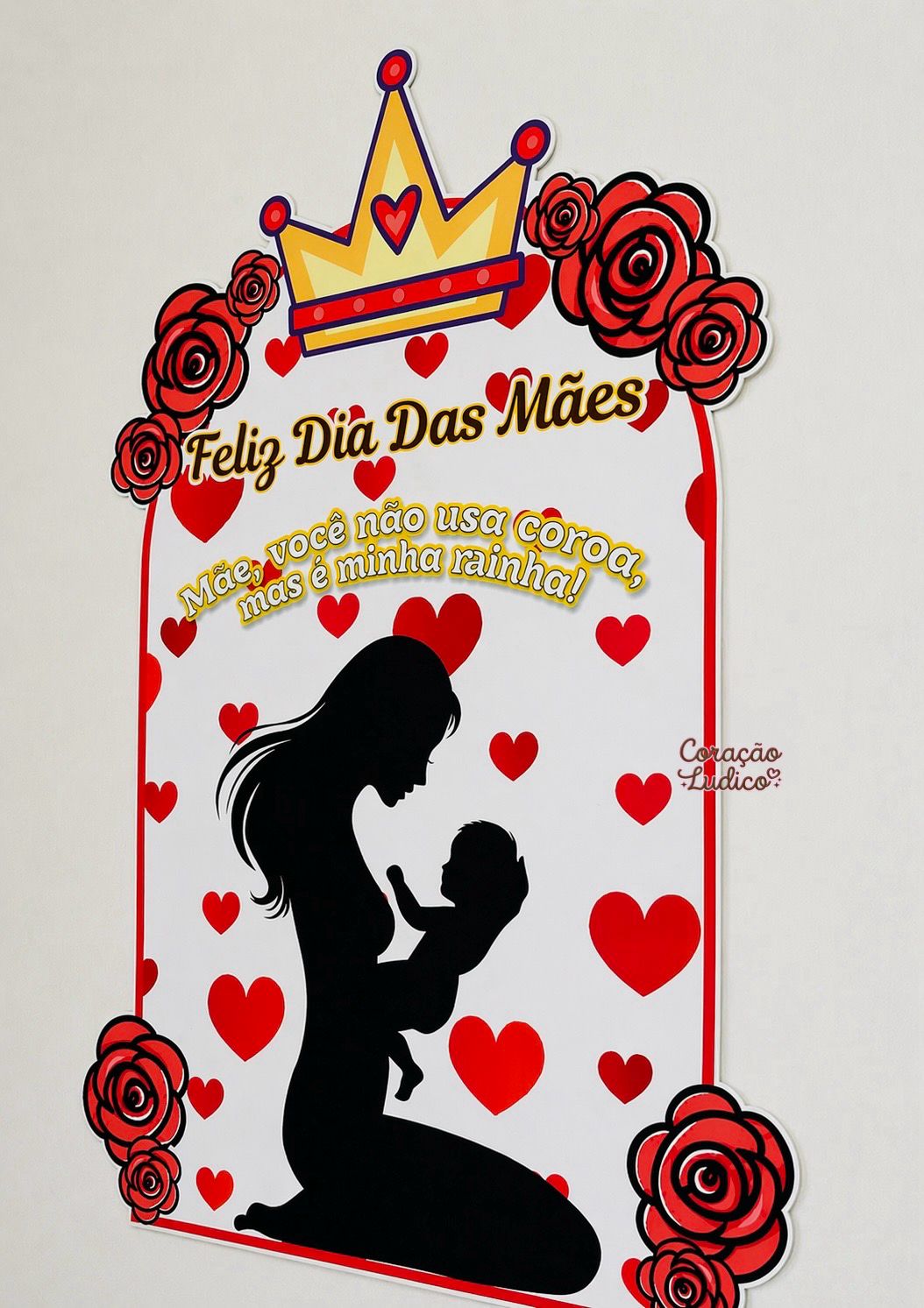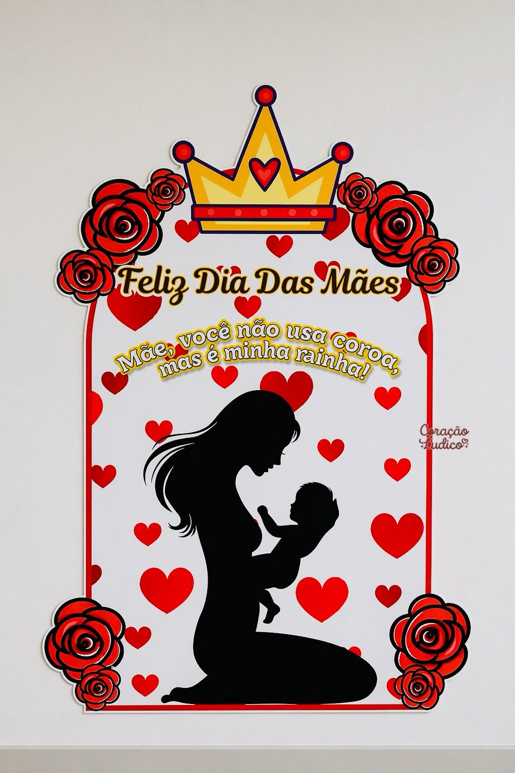 Com design sofisticado em tons de vermelho, coroa e detalhes florais, ele traz a linda mensagem: