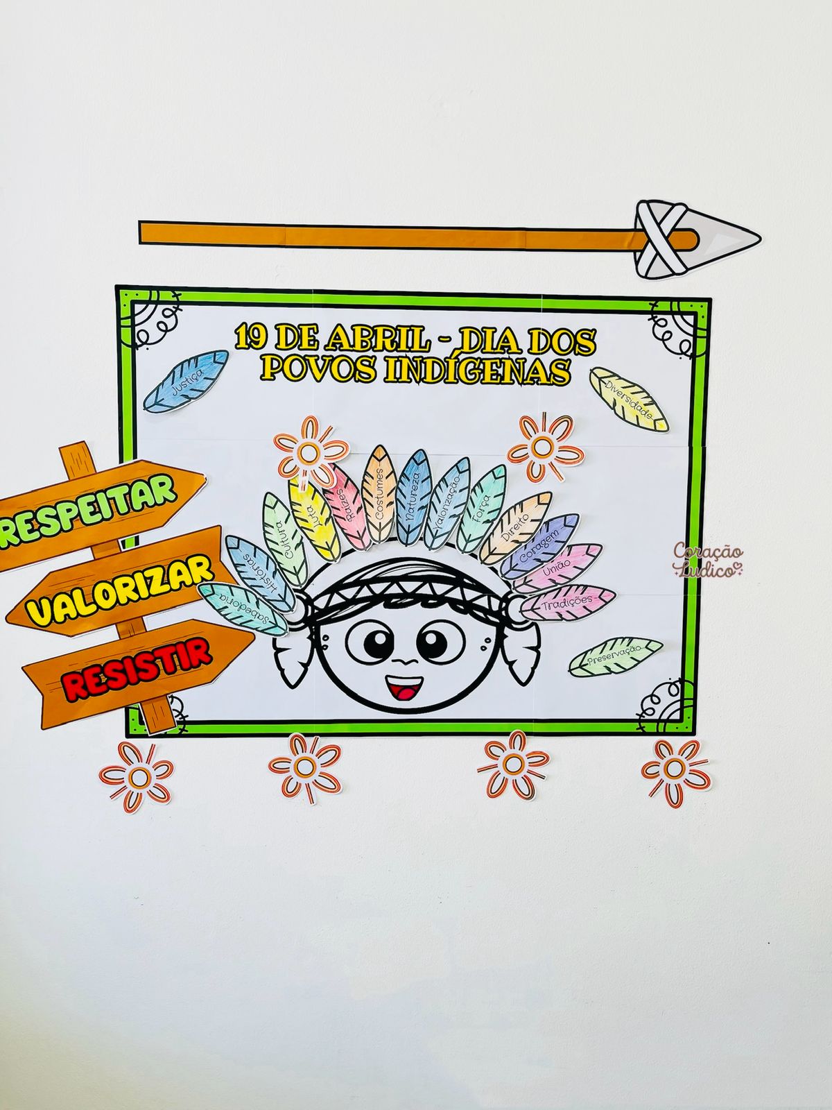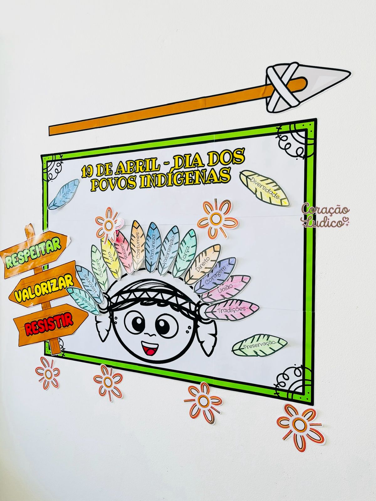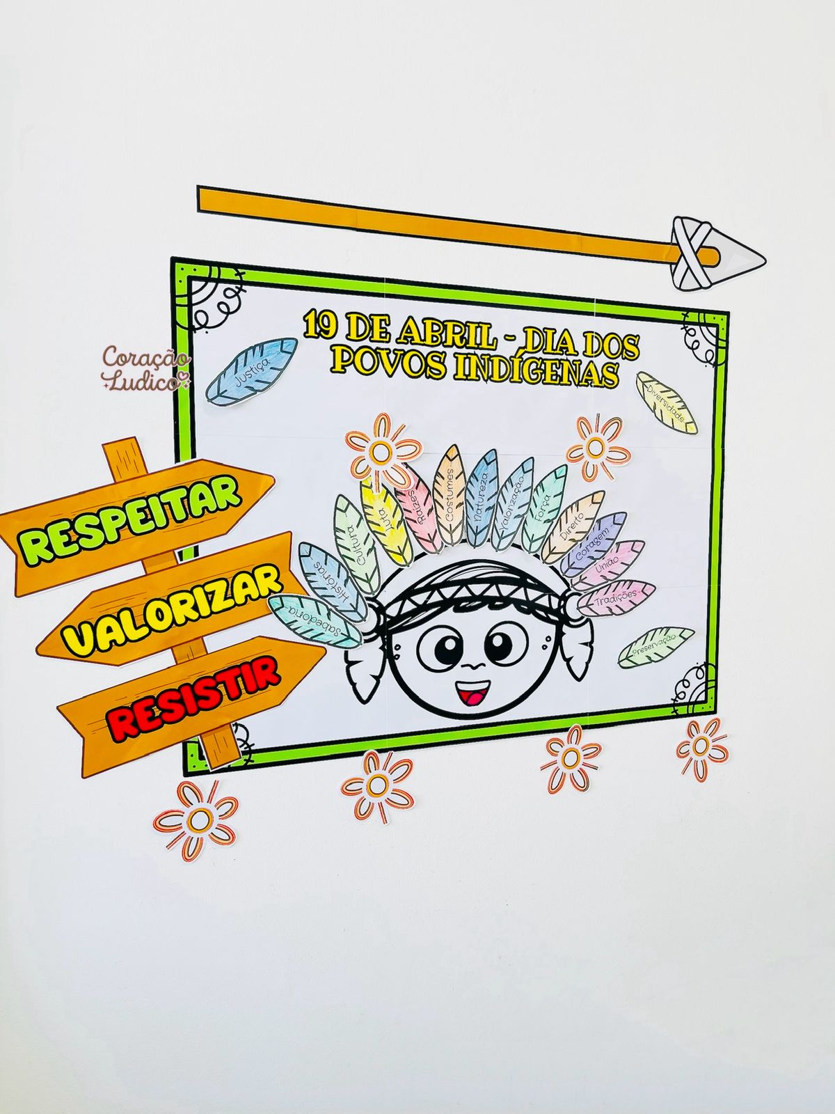 Um recurso pedagógico pensado para construção coletiva, onde as crianças participam juntas da montagem do cocar, tornando o momento ainda mais significativo.