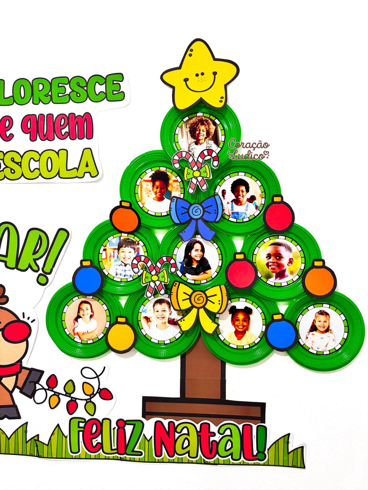 O painel perfeito para encantar a turma! Com 1,34 x 0,95 m, ele traz uma árvore feita com pratinhos descartáveis que ganha vida com as fotos dos alunos, criando um efeito 3D apaixonante.