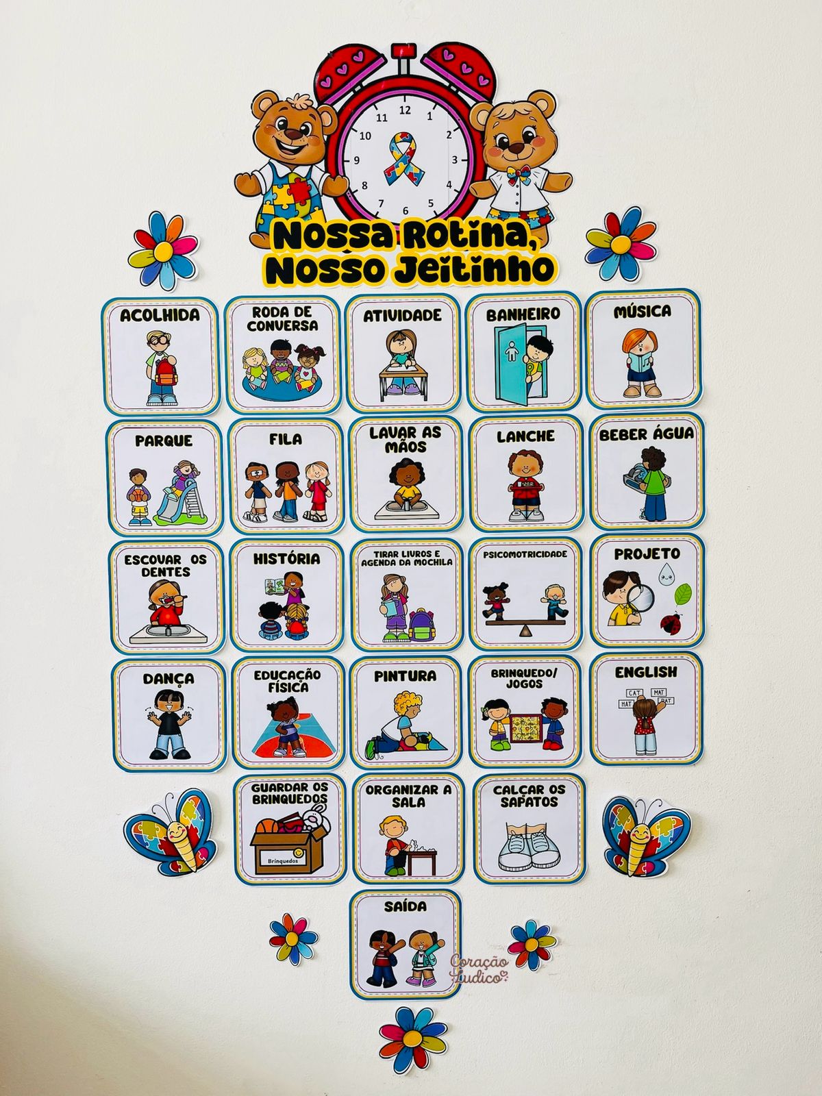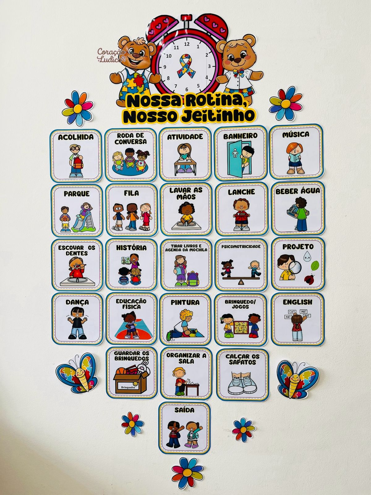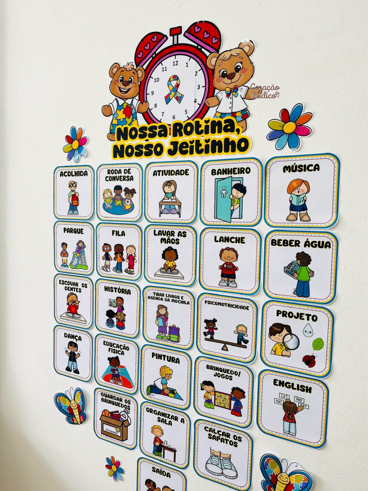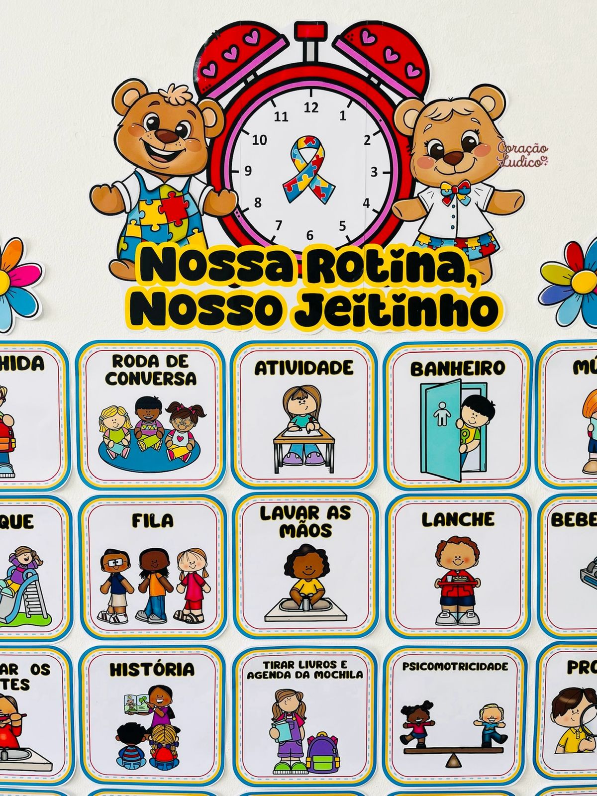 A rotina é essencial para o desenvolvimento e o bem-estar dos alunos com Transtorno do Espectro Autista. O material apresenta uma rotina visual ilustrada, com cards claros e lúdicos que representam os principais momentos do dia escolar, como: acolhida, roda de conversa, atividades, higiene, lanche, brincadeiras, projetos, organização da sala e saída.